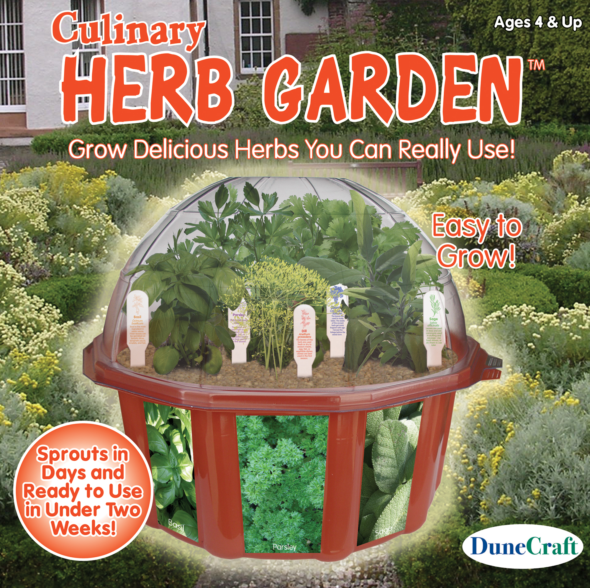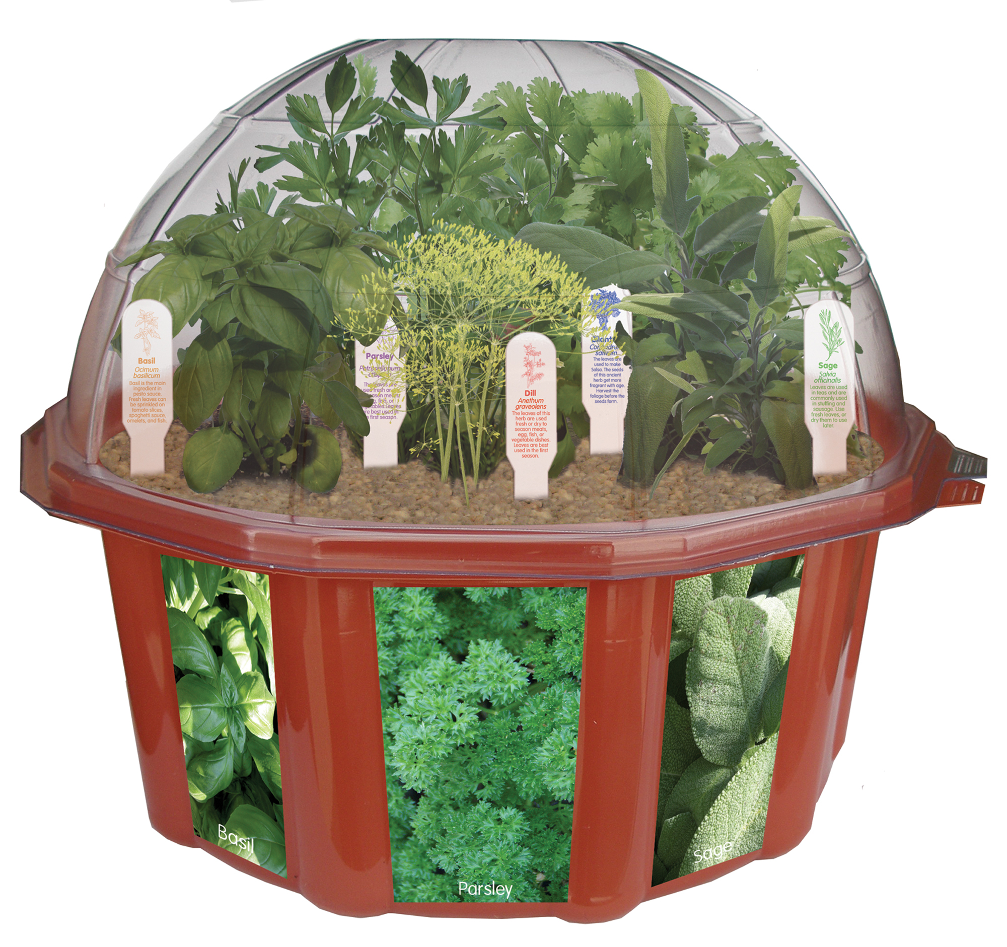 Learn how to grow and use herbs right in your own kitchen in less than a week! This complete kit contains everything needed to keep fresh herbs in your home for months upon months. Sprout and start seedlings in the dome for transplant, or grow and use them right out of your culinary dome. The five individual seed packs contain enough seed for three or more plantings. The complete instruction manual explains how to sprout, grow, harvest, and use all of the herbs in your Culinary Herb Garden.