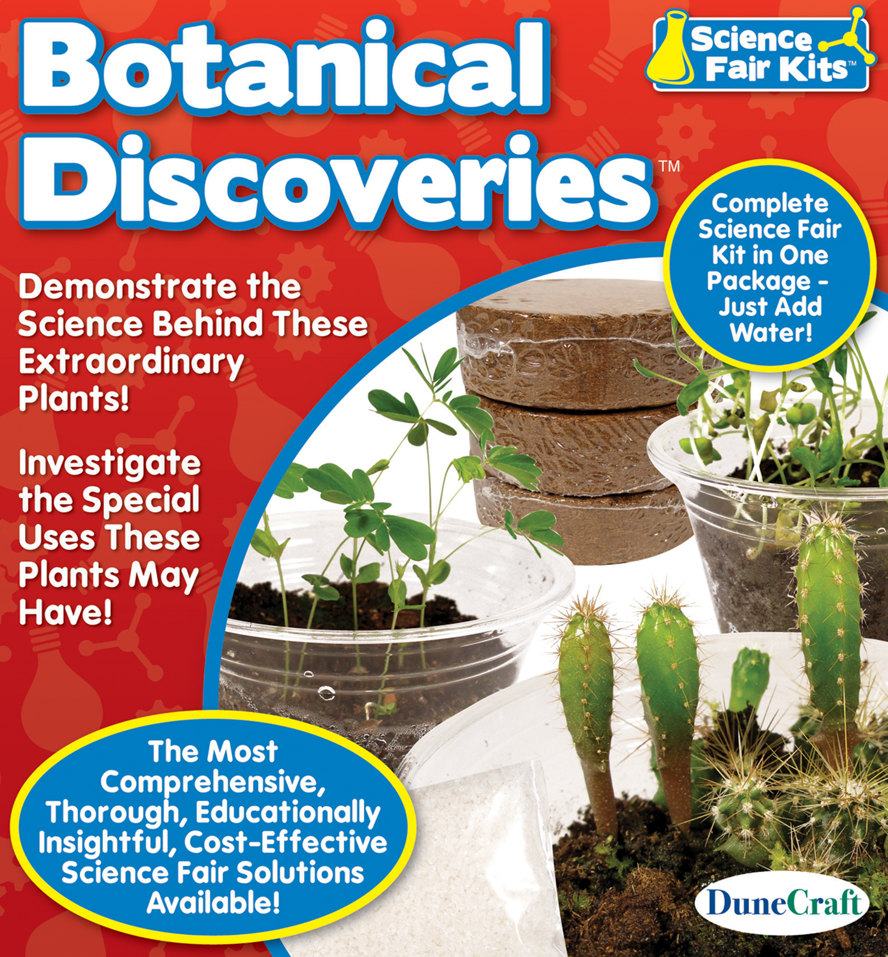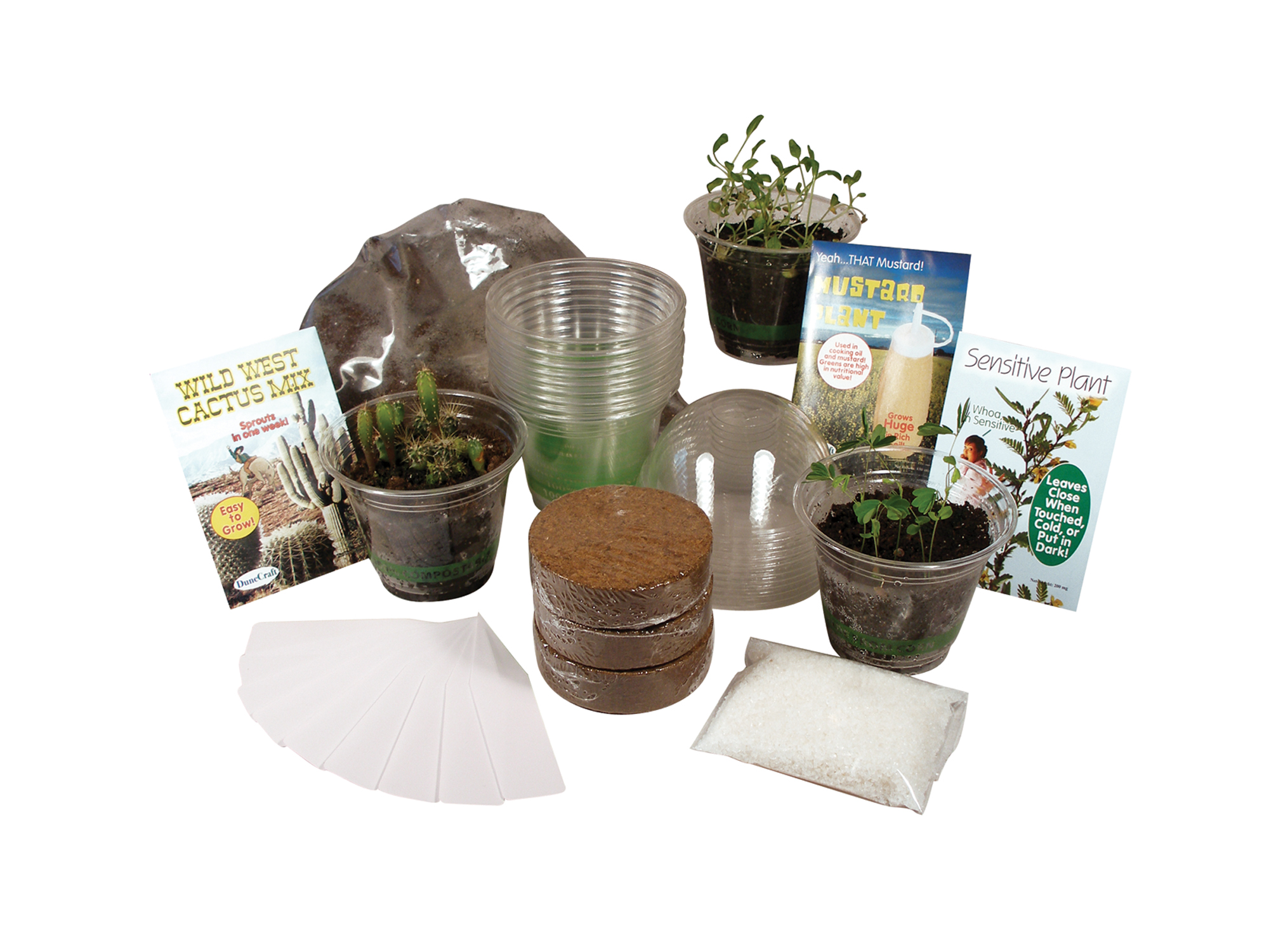 Learn and demonstrate fascinating and educational experiments with amazing plants! This kit covers phototropism, photosynthesis, photoperiodism, and more! This kit demonstrates how humidity effects germination and growth rates of plants, how plants react to touch and temperature changes, as well as many others. Compare moving plants to fast plants to water conservation plants! Learn how plants breathe by observing a growing plant in a terrarium. Compare root structures of all three plants. Comes complete with everything needed, just add water, containers, presentation materials and you have a complete science fair project! Safe for grades 2-8.