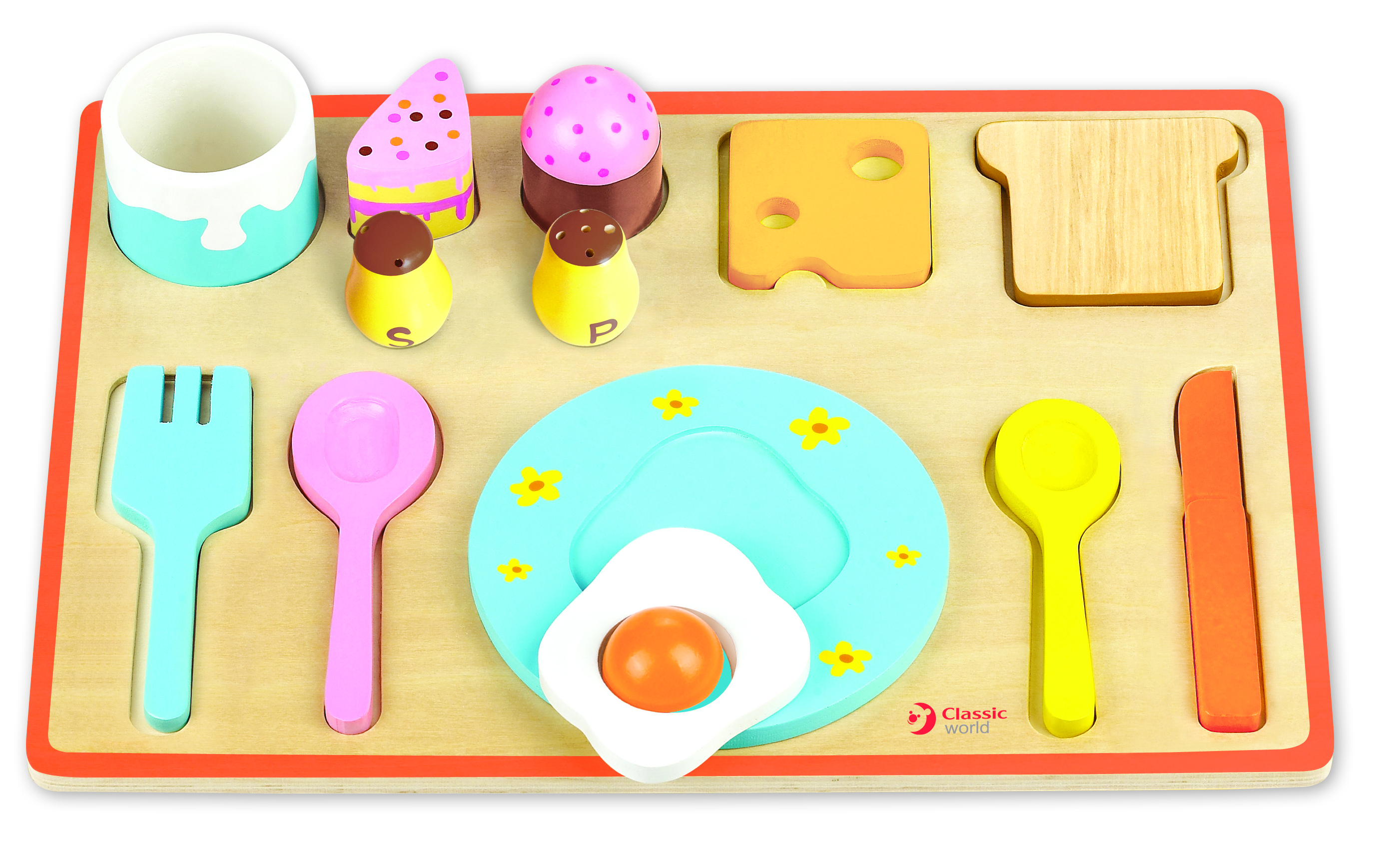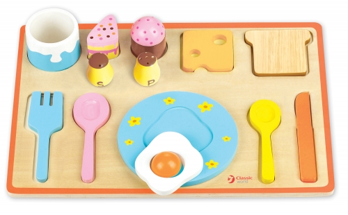 Children can learn the names and shape of these breakfast staples through this brightly coloured breakfast puzzle. They can put the components into the correct place on the board. This can also help gain an idea of daily life through play.
