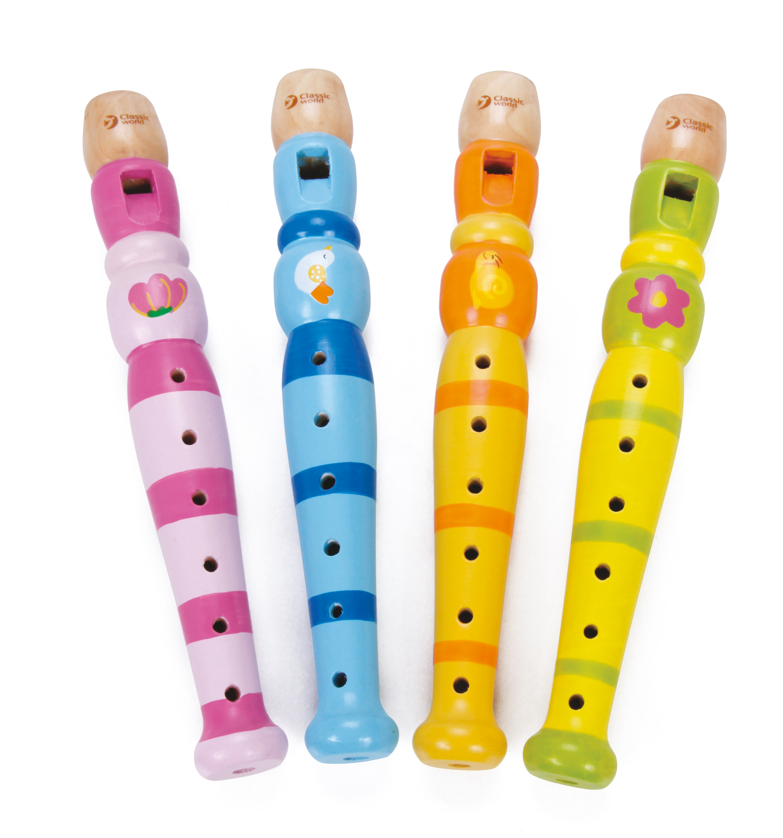 These flutes comes in bright colours with decorative paterns.