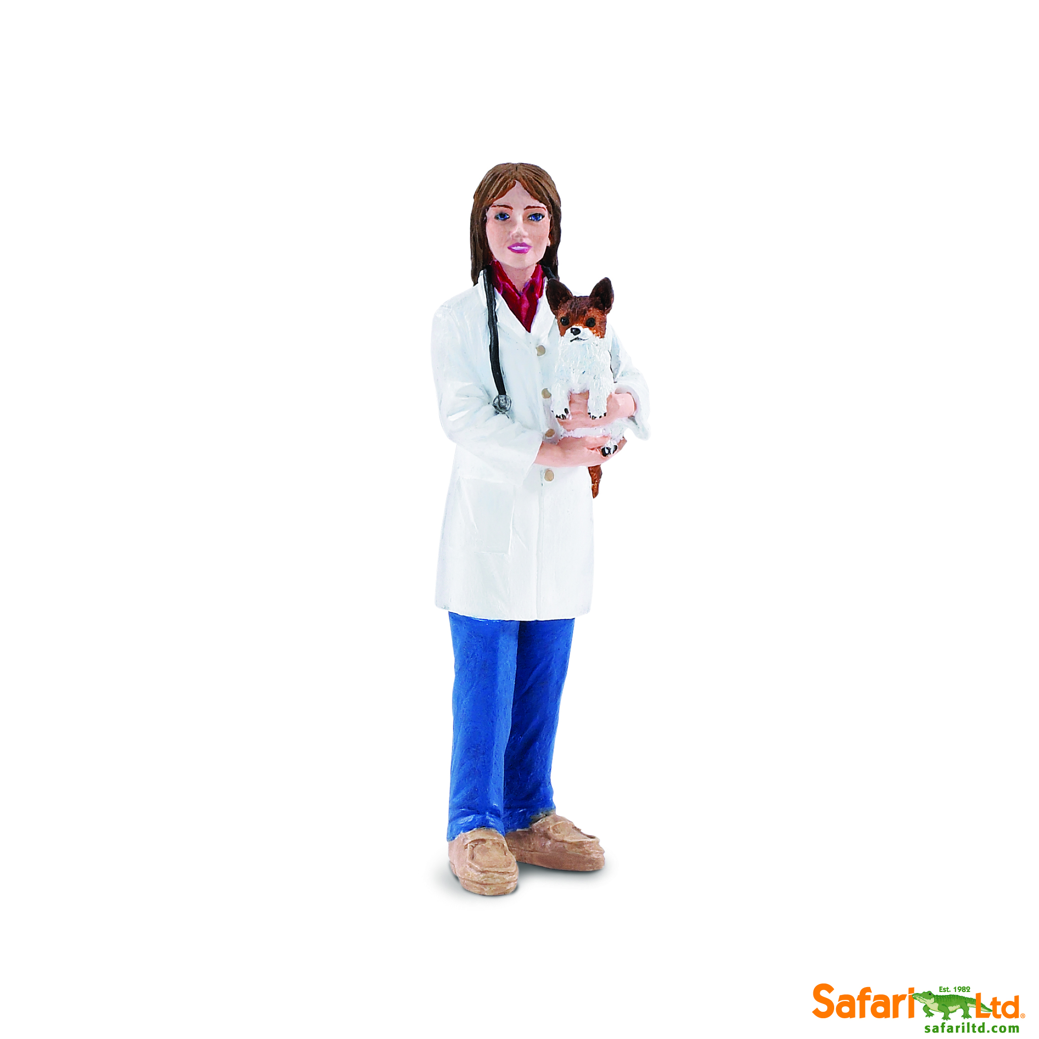 Jenny the Veterinarian is ready to give this puppy the care it needs for a long, healthy life. Community heroes come to life wearing realistic uniforms in the Safari People collection from Safari Ltd®.