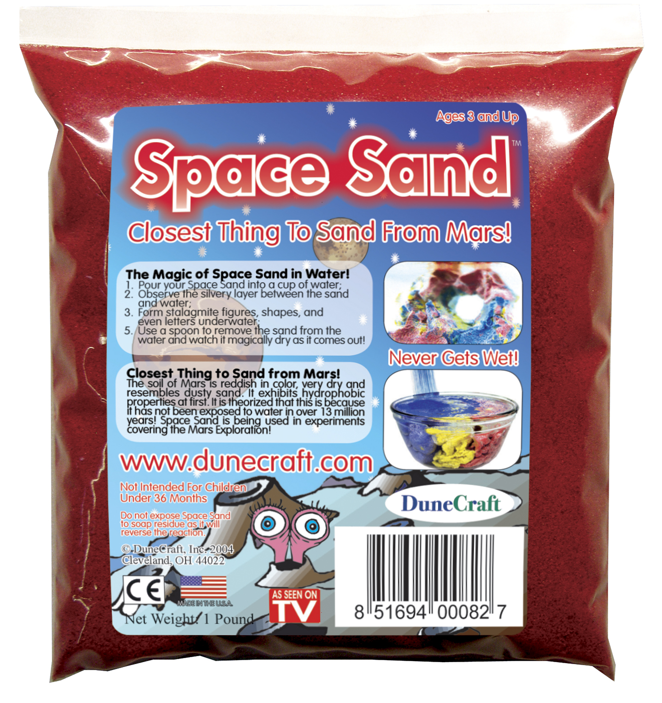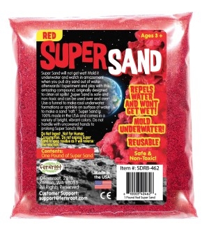 See the sensation that has been featured in countless media including Family Fun Magazine, and the Regis and Kelly Show. This amazing sand will not get wet: dump it in a glass of water, remove it with a spoon, and it will emerge completely dry! This sand is actually the closest thing to sand on Mars, and it is used in NASA Mars Exploration Classroom experiments.