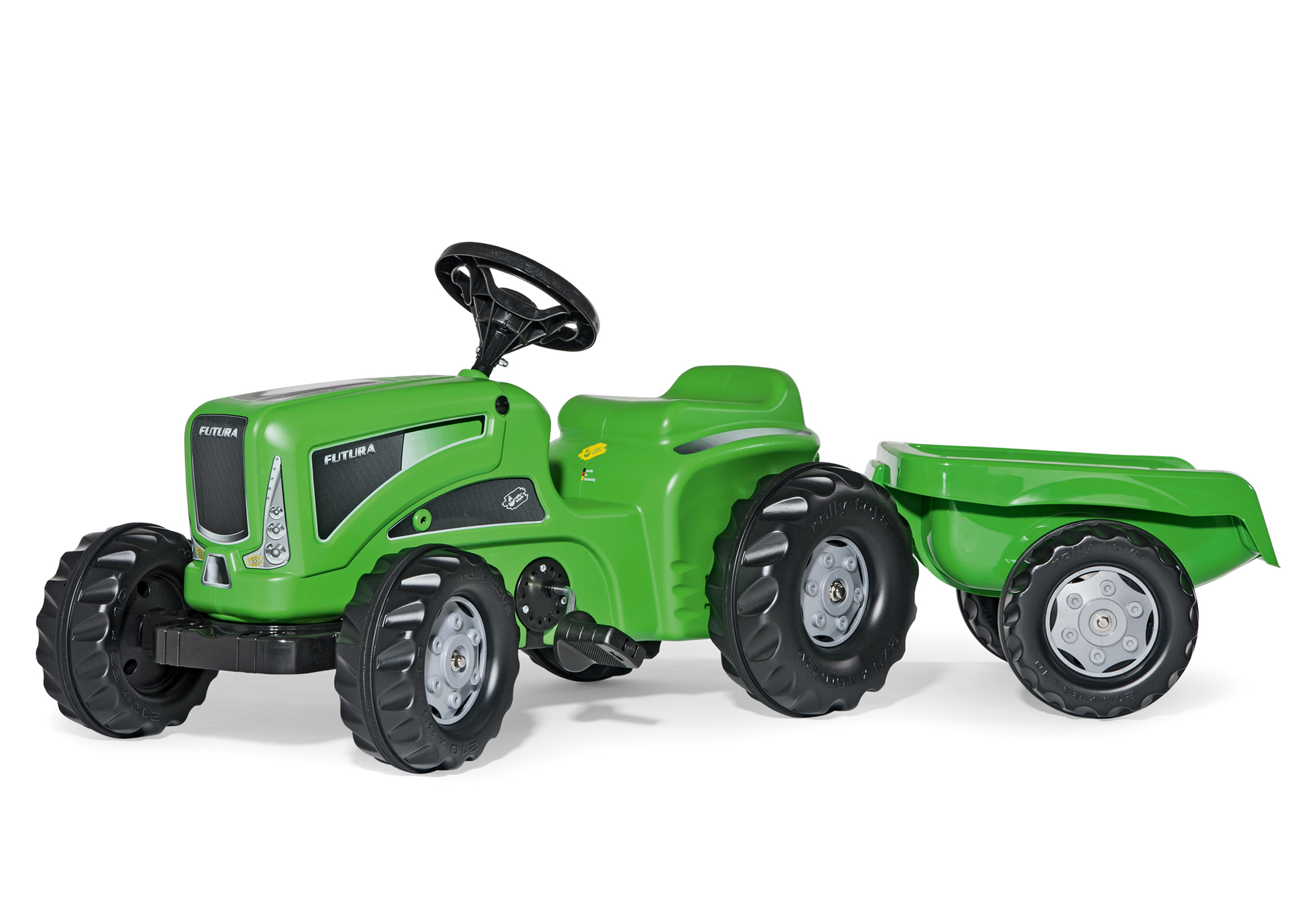 This large Rolly Toys green tractor features rugged styled wheels, anti-slip pedals, rear hitch pin and is completed by a large detachable trailer. Just perfect for the budding farmer and young outdoors person!