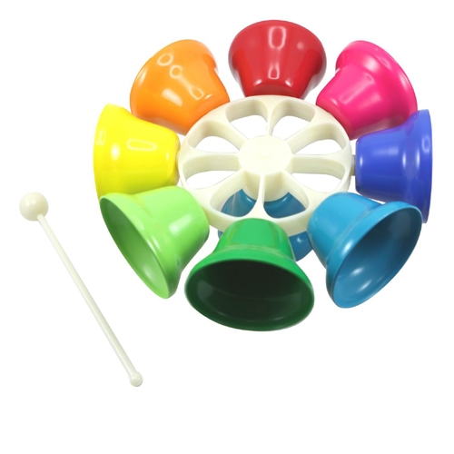 A beautiful set of 8 bells, each differentiated by colour and sound. Tuned to the octave of middle C. Each bell can be struck while the bells remain stationary or the bells can be spun and the striker lowered to play a continuous sound of the different notes.