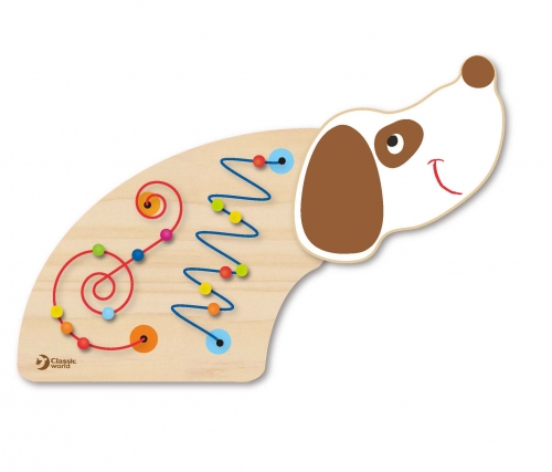 This creative sensory activity wall is designed to look like a playful dog that will attract interest and intrigue wherever it is visible.