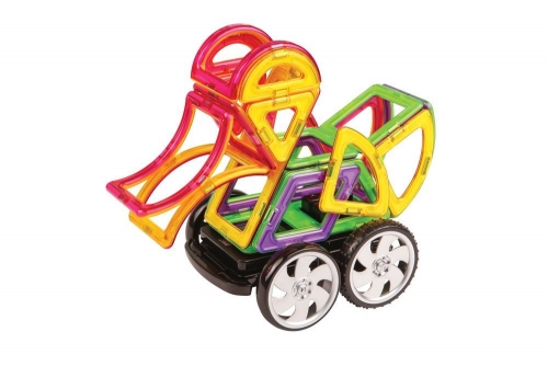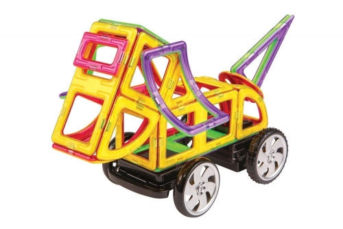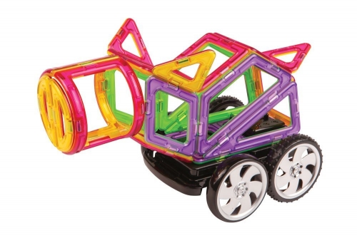 Magformers Zoo Racing Set includes wheels and R/C. Create happy animals, put them on wheels and enjoy the race. See, if a turtle can beat the rabbit to the apple tree!