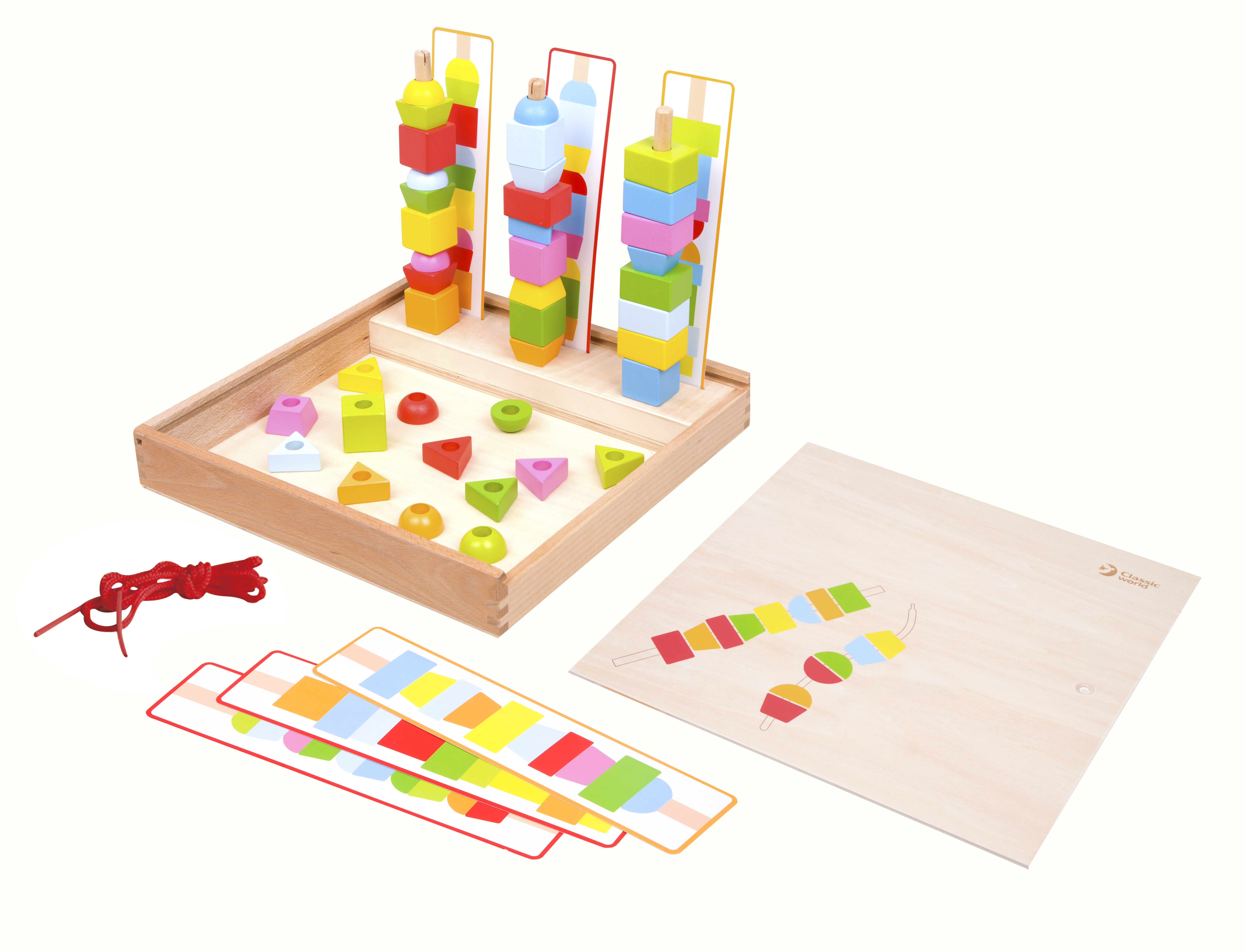 This creative, colourful, educational Pegs Box is great for developing hand and eye co-ordination. Children move the beads around and up and down.