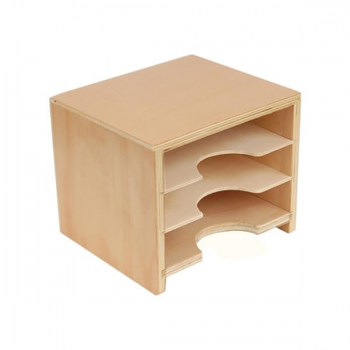 Small wooden cabinet with three shelves that are designed to organize geometric cards or leaf cards.