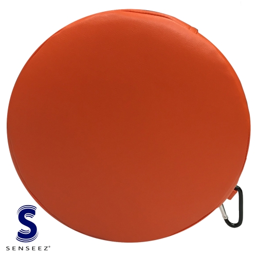 The orange circle is just right for booster seats or circle time. The vinyl material makes it easy to keep clean all day! The pillow is small enough to take anywhere and is made just for little bottoms