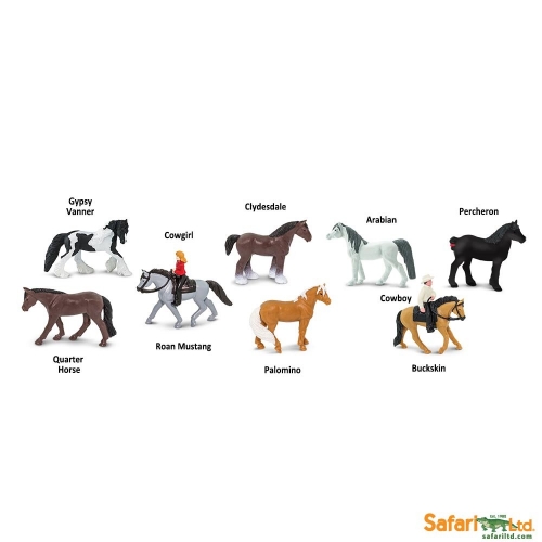 Characteristics: Realistically crafted and professionally hand painted, each figurine in this Toob captures not only the precise coloration of each of these horse species, but their personality and demeanor as well. Be it the strong willed Arabian, the gentle giant Clydesdale, or the proud and intelligent Percheron, these horses are more than just animals - they're companions.