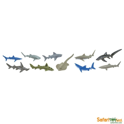Size and Color: Contains 11 different shark species, as well as a member of the ray family for a touch of variety, that range from 3 to 9.5cm tall. Be it the long, slender cement colored fins on the thresher shark or the iconic slate gray coloration on the infamous great white, this Toob captures the essence of the oceans' apex predators.