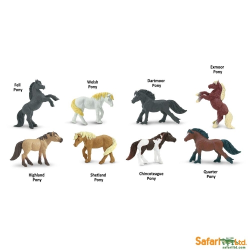 While they might be small in stature, these ponies have the heart of gallant steeds. Including a Dartmoor, highland, fell, Welsh, quarter, Shetland, Chinoteague, and Exmoor pony, our Ponies Toob contains tons of little friends with big personalities!