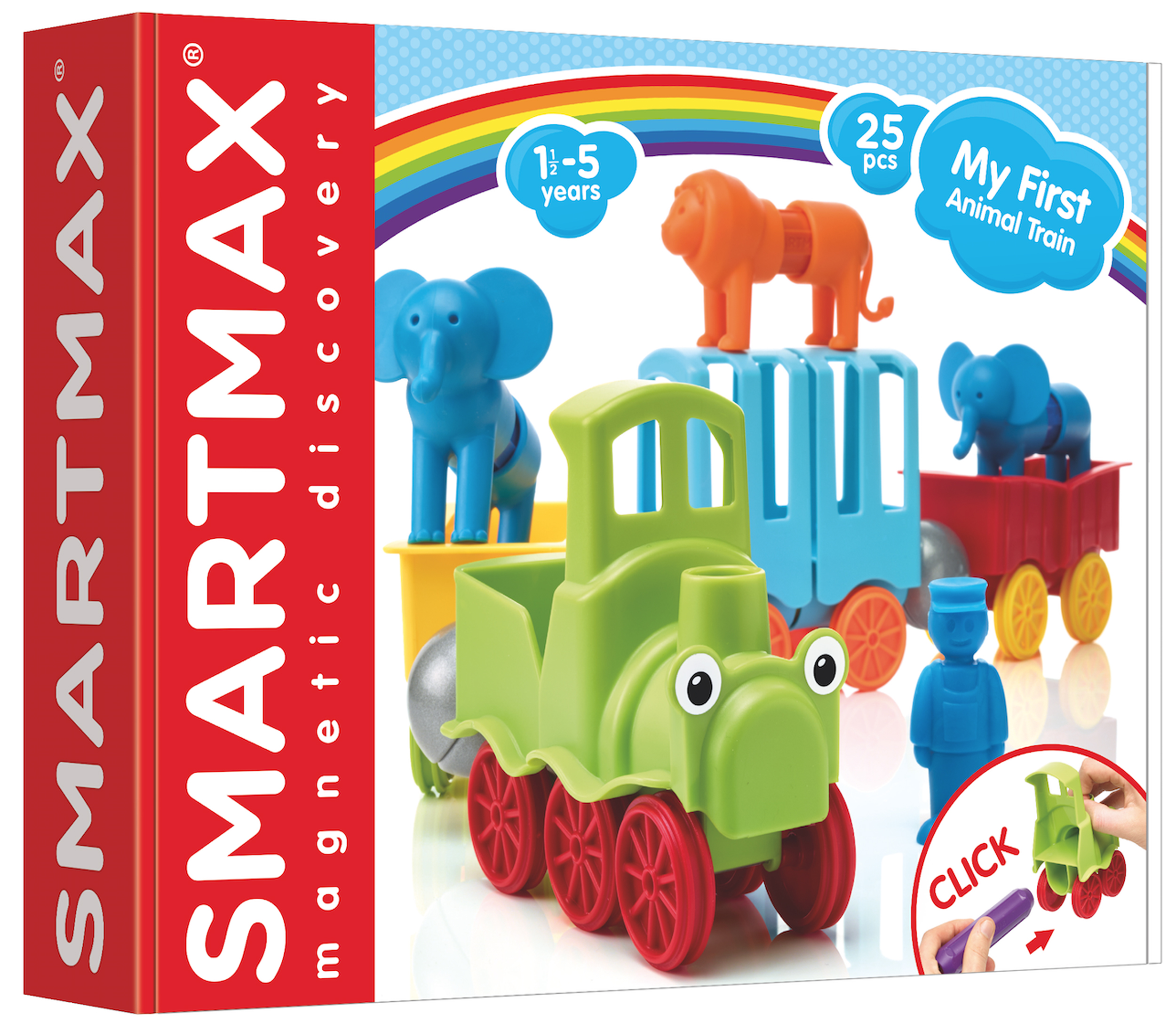Build, play and rebuild again. This magnetic locomotive has five train cars, a driver and four animals. My First Circus Train set opens up the world of rail play for one year olds.