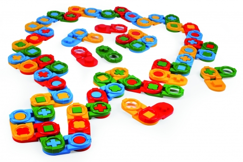 The best way to learn is to have fun. This Domino set does exactly that, with interlocking parts, this set can be used for building and construction and helps to develop logical think by matching the shapes.