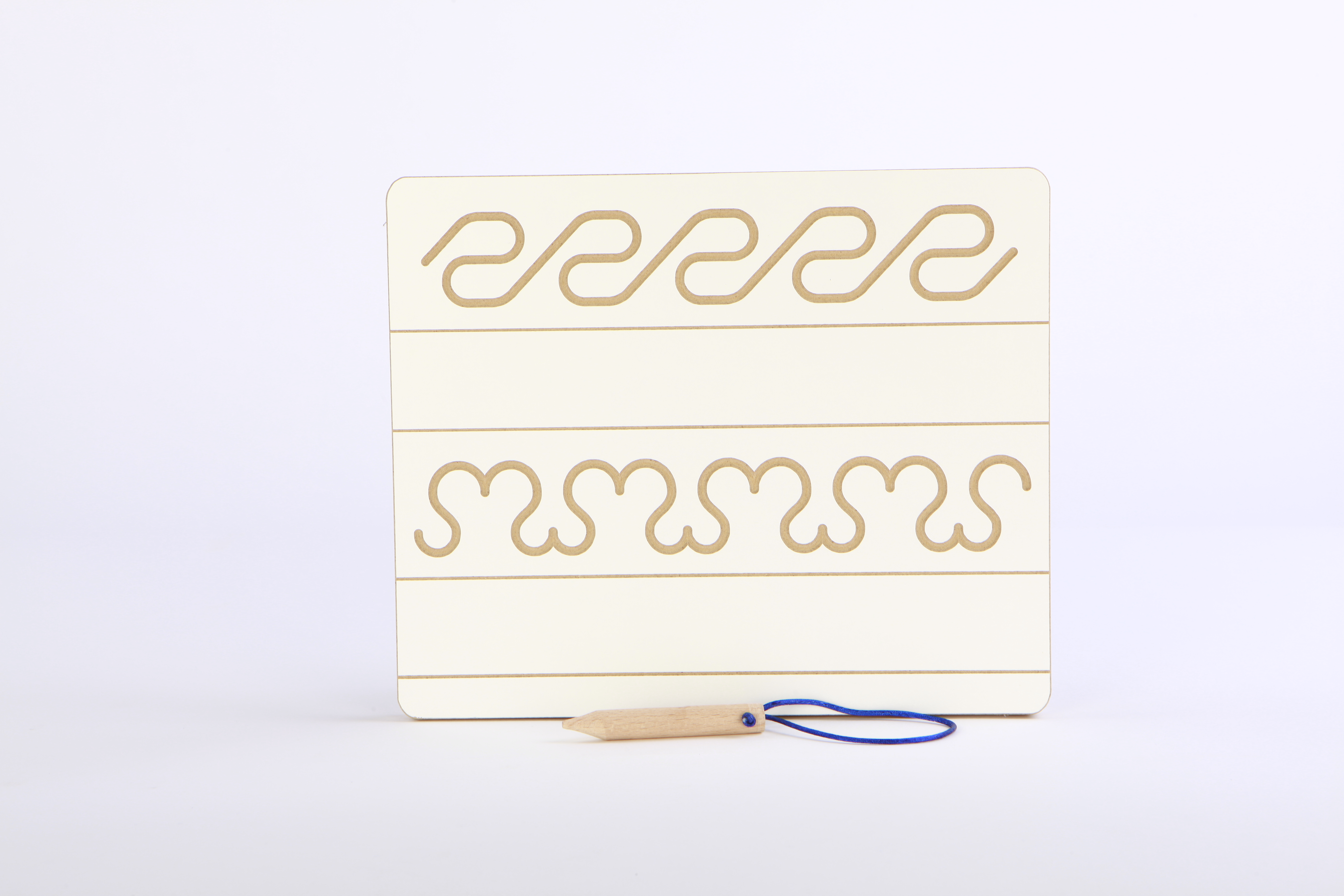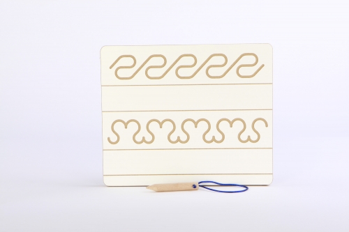 Tablets helping the child to learn how to write alphabet letters. Diverse trails allow the child to lead the pencil in many directions. Smooth surface makes it easy to write on it with whiteboard markers.