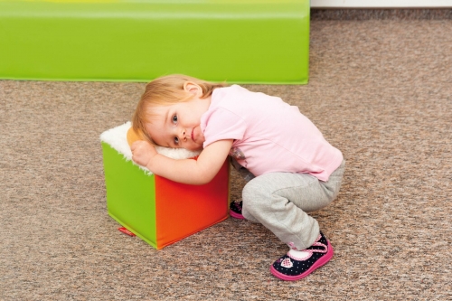 An educational sensory foam cube with 6 different texture walls.