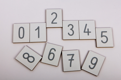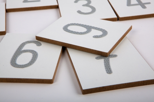 Set of ten board made of 6mm MDF with textured 3D printed numbers from 0-9. The clear texture of the digit stimulates the sense of touch. The toy can be used as a help for blind and visually impaired children.