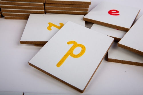 Set of boards made of 6mm MDF with textured 3D printed letters. The clear texture of the letters stimulates the sense of touch. The toy can be used as a help for blind and visually impaired children.