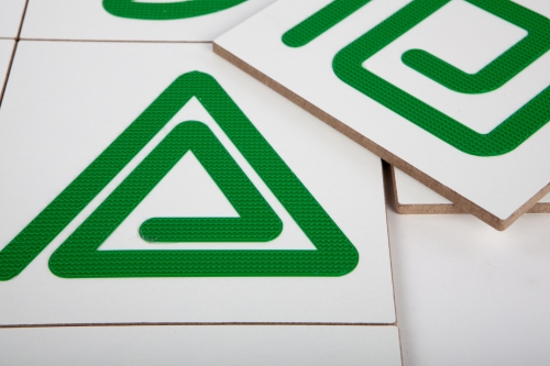 Set of ten boards made of 6mm MDF with textured 3D print. The clear texture of the various shapes stimulates the sense of touch. The toy can be used as a help for blind and visually impaired children.