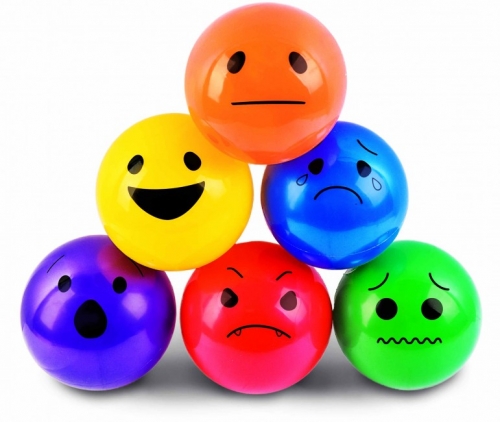 I feel happy! How do you feel? Express yourself using these six brightly coloured balls showing different emotions.