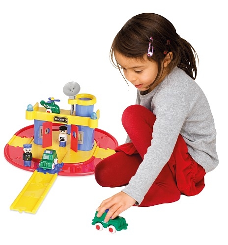 Police station with 2 figures, 15 road pieces, 1 house, 3 vehicles and 1 helicopter, packed in giftbox