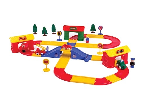 Stockholm play set with 3 figures, 38 road pieces, 1 bridge, 3 vehicles, 4 road signs, 4 trees & 3 houses, packed in giftbox