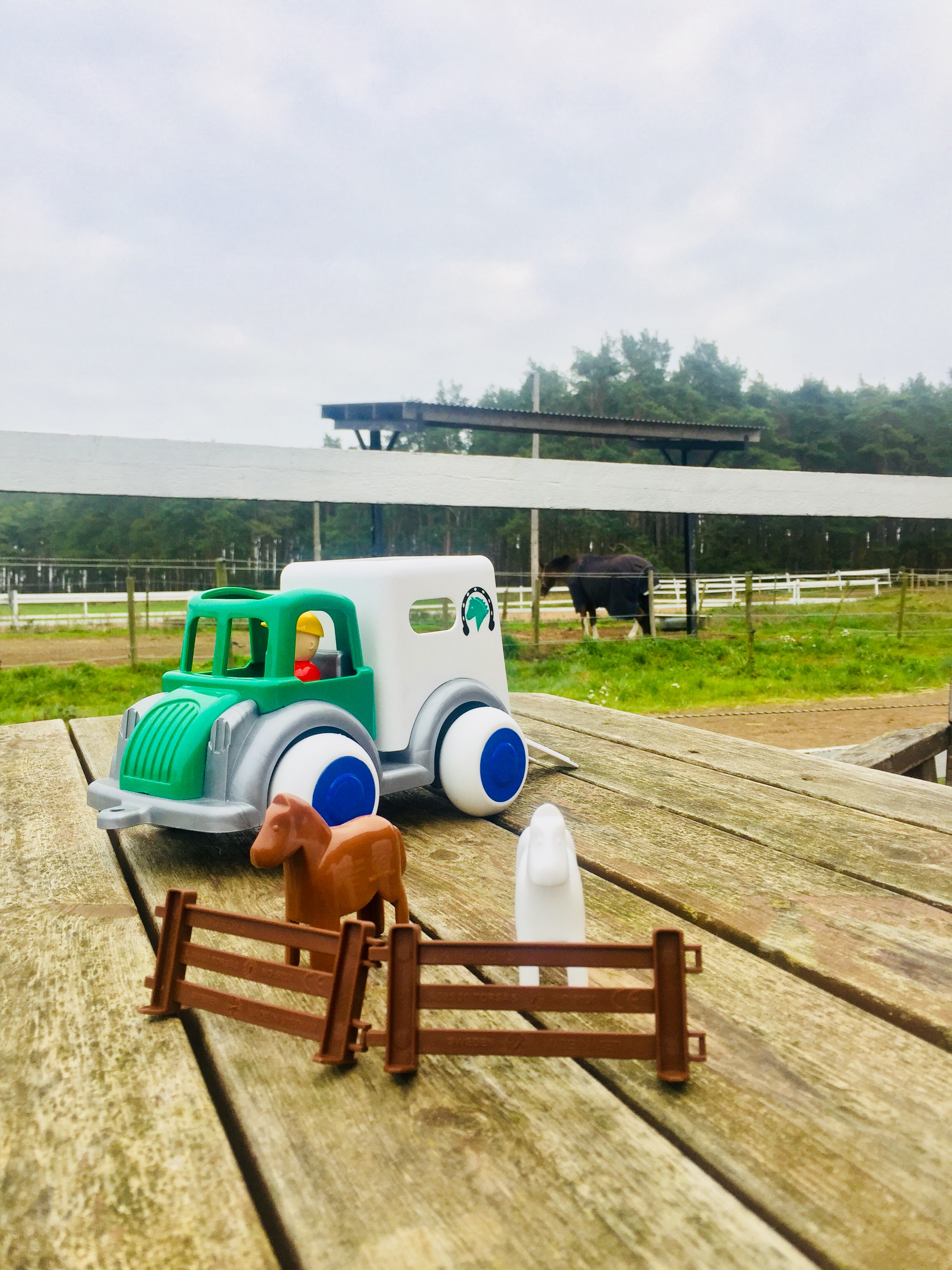 25cm horse transport with 1 figure, 2 horses and fencing