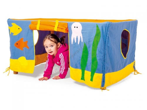 The drill cotton tent creates a safe and intimate place for play for any toddler. Comes with numerous underwater motifs, drawstrings, 2 round windows and 2 entrances with velcroed curtains.