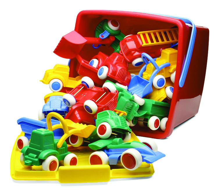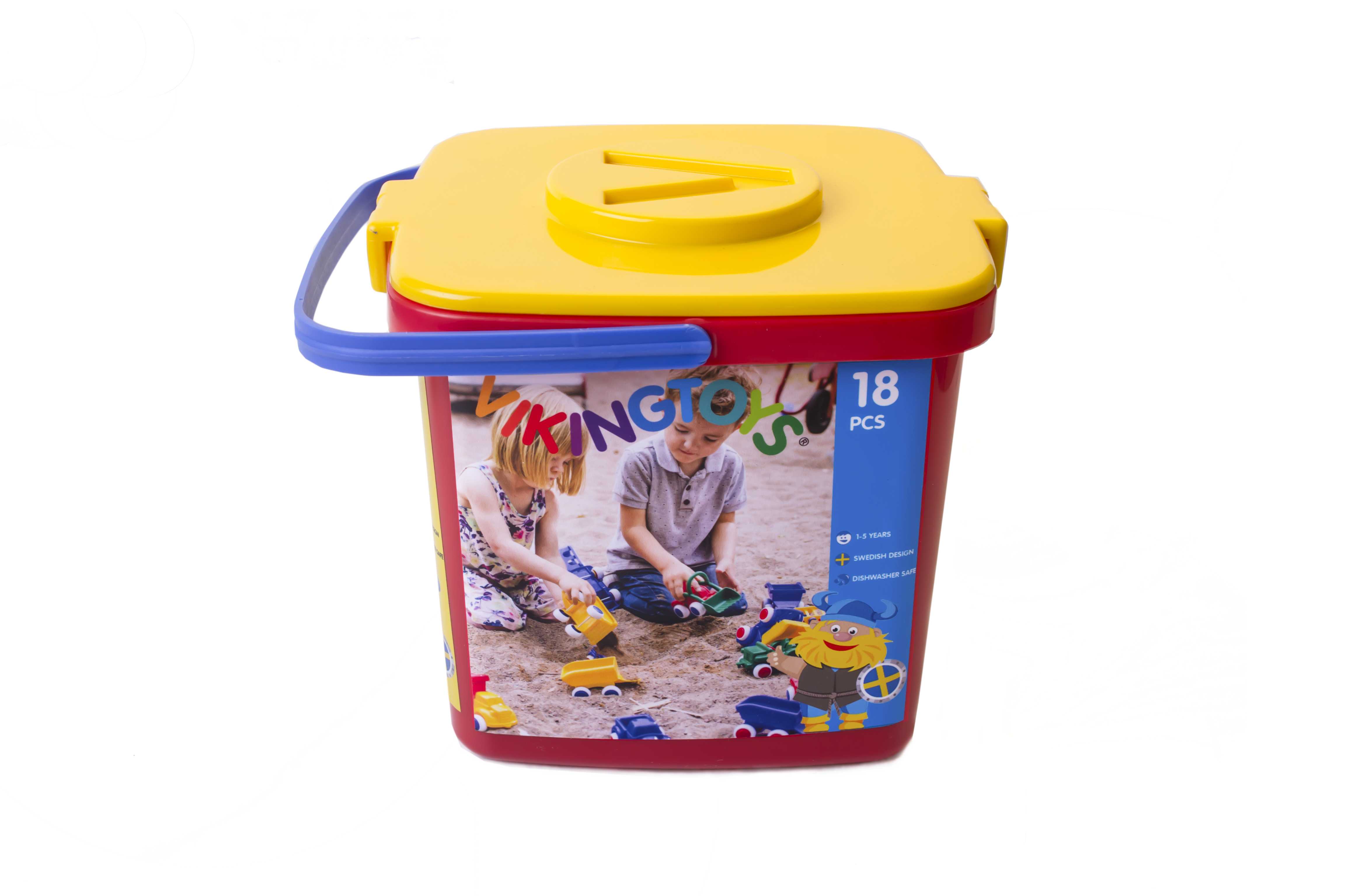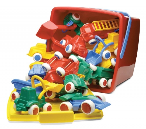 This 20 litre bucket includes 18 pieces of Maxi vehicles.