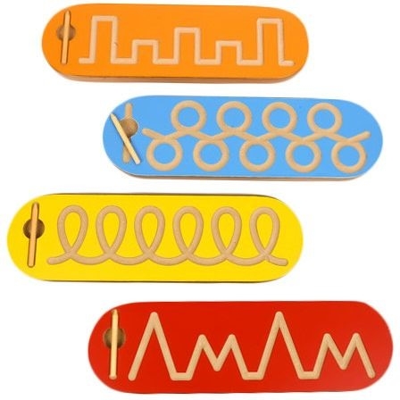 The set consists of four boards with patterns. Children learn to draw lines, properly hold and guide a writing tool, plan the hand movement, and draw lines in accordance with the reading direction. Each board exercises with varying degrees of difficulty are a great material for working with young children. The perfect way to start the adventure with learning to write.