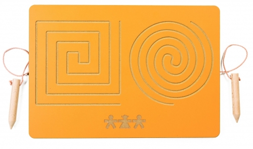 Exercise tablet for both hands. Children use the wooden pencils to trace the patterns, the child practices coordination skills and prepares their hands for learning to write letters. It should be remembered that tablets can be used by children who are also left handed.