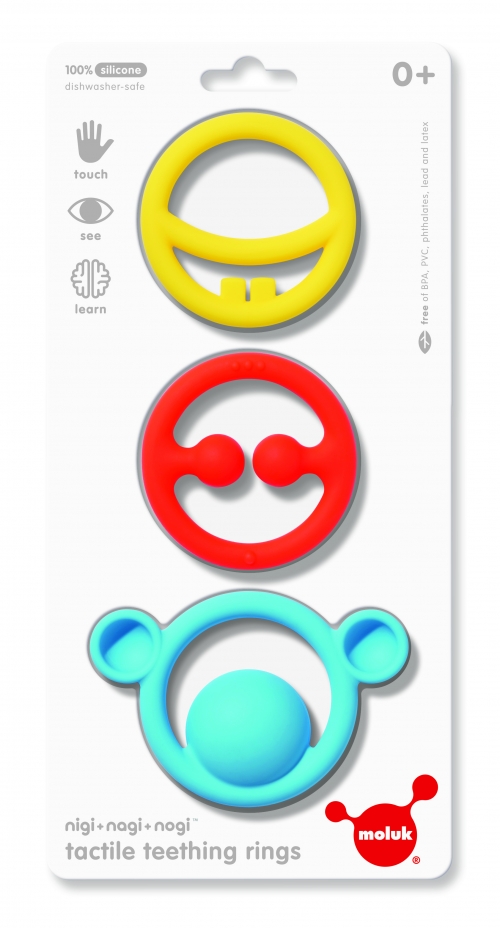 Nigi, Nagi and Nogi are soothing your baby’s sore gums without being an eyesore. Made of 100% food-grade silicone rubber, MOLUK’s new teething rings are easy for small hands to hold and offer essential tactile and visual stimulation. The rings are dishwasher and freezer-safe.
