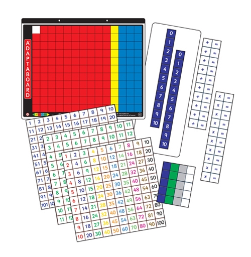 ● One Adaptaboard and one of each of the 1-110, Addition and Multiplication sets of magnetic tiles (392 tiles).