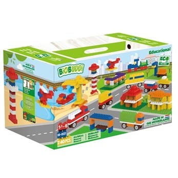 The City playset is perfect for children with a big imagination. Learn everything that has to do with the city. Build house, cranes, trains, cars and helicopters, the possibilities are endless. With 240 building blocks, this set guarantees hours of construction and playing pleasure.