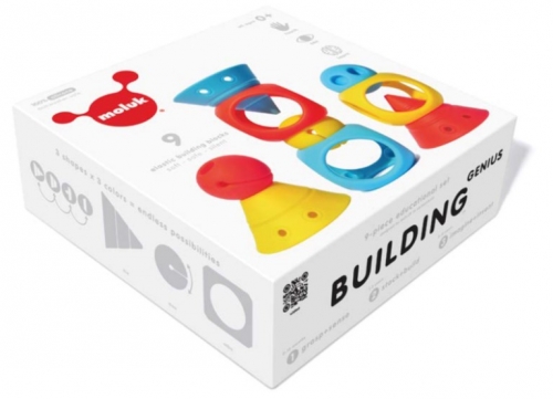 BUILDING GENIUS is an educational 9-piece set combining Hix, Mox & Oibo. Each of these three award-winning toys offers a broad range of sensory stimulation and play possibilities from birth and onward. Together, they take play to the next level as a universal building and construction game. BUILDING GENIUS grows with your child, surprising with new uses and challenges at each stage of the child‘s development.