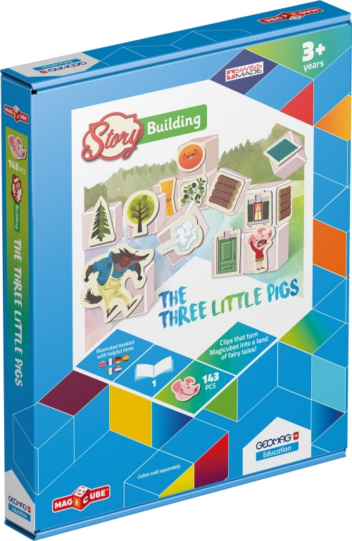 Creative construction becomes a wonderfully interactive story-time adventure with the Geomag Magicube Story Building Three Little Pigs Set.