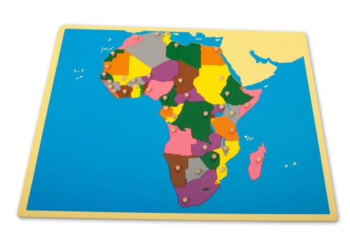 Wooden puzzle map of Africa measuring with knobs located at the capital of each country.