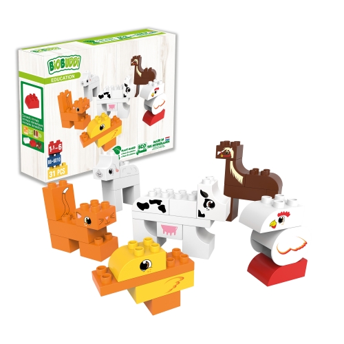 Perfect for animal enthusiasts, this special set puts a world of domestic animals at your little one’s fingertips. This learning play set offers building blocks with plenty of possibilities. Build the cow, the brown horse or the noisy chicken. Don't forget about the sheep. But it does not stop there. Leave it to your imagination to build creations outside of the box. Kids practice lasting life skills through play and creativity. With this set you as a teacher or parent find out how toy blocks support your little one's developmental milestones, like learning colors, shapes and a lot more.