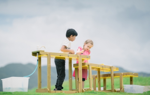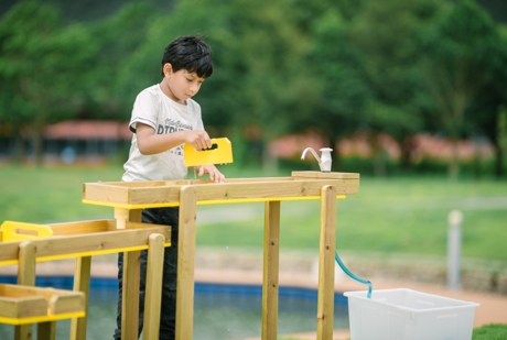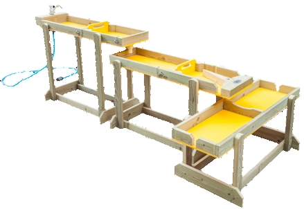 A unique combined waterfall system containing 3 reservoirs in different heights. Helps children explore the principles of following water. Children can let the water flow from 1 reservoir to the other by opening and closing the taps. A squeeze ball pump let the water recycled back to the top reservoir from bottom reservoir.
