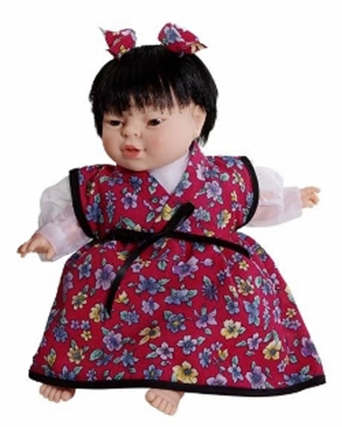 She has a soft body for a warm and cuddly feel. The clothes are washable and the body can be sponged clean.