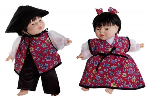 The East Asain Boy and Girl pair are dressed in a style typical to the region.