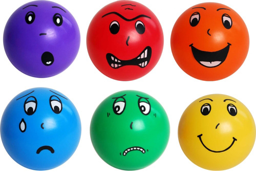 I feel happy! How do you feel? Express yourself using these six brightly coloured balls showing different emotions.