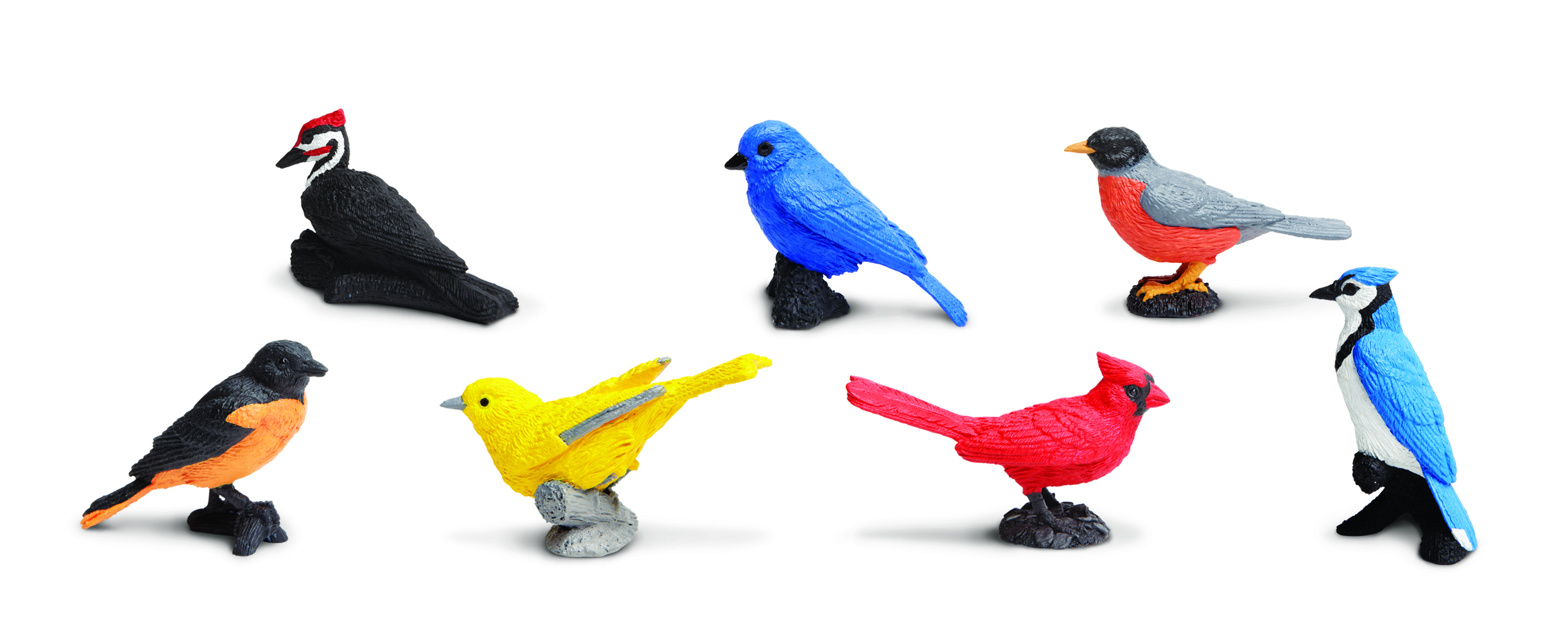 The Backyard Birds set contains seven replicas, including: