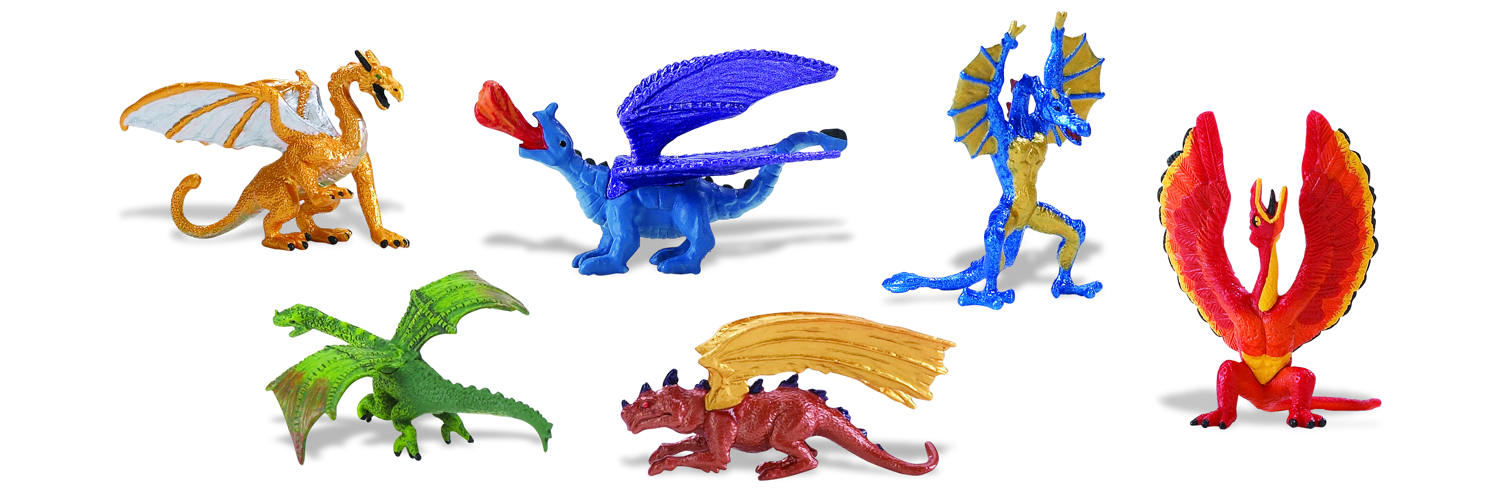 You just might find a hidden treasure if you can get past the snarling Dragon toys in our Lair of the Dragons Collection One Designer TOOB® by Safari Ltd®. Designer TOOBS® are specially designed collections of small, hand-painted figures featuring vibrant colours and professional sculpting. Each themed set of educational toys comes in a reusable cylindrical tube that slides open and closed for easy storage and transportation. The active poses and accurate details of these collectibles are ideal for educational projects, dioramas, and imaginative play. Most importantly, children can learn while playing with the tiny figures.