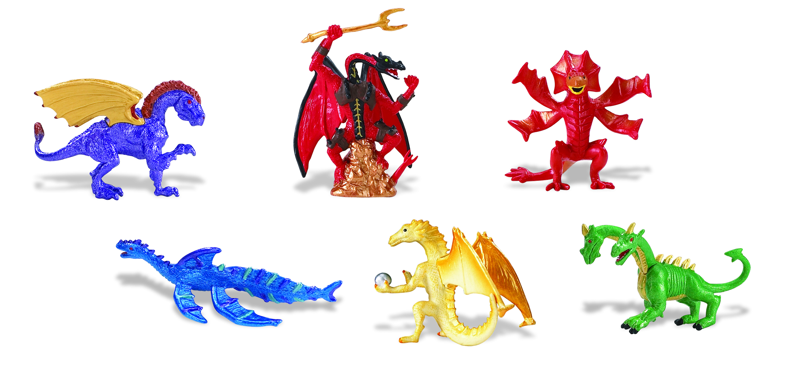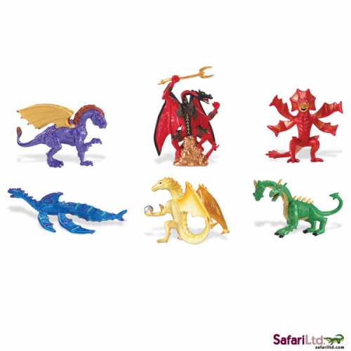 Battling knights and breathing fire comes naturally for these Dragon toys! Discover more with our Lair of the Dragons Collection Two Designer Toob® by Safari Ltd®. Designer TOOBS® are specially designed collections of small, hand-painted figures featuring vibrant colours and professional sculpting. Each themed set of educational toys comes in a reusable cylindrical tube that slides open and closed for easy storage and transportation. The active poses and accurate details of these collectibles are ideal for educational projects, dioramas, and imaginative play. Most importantly, children can learn while playing with the tiny figures.