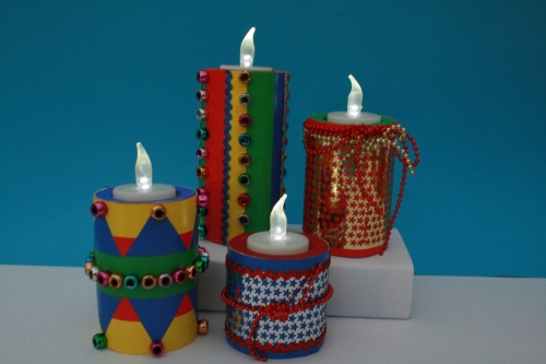 The nightlight holders are suitable for painting, if required. We recommend using acrylic paints. Children can be encouraged to develop their creativity by adding odds and ends brought from home. Scraps of fabric, lace, ribbons, old button and beads, gift paper, pictures from old greetings cards, and even photographs can be used creatively to make something completely unique and absolutely personal.