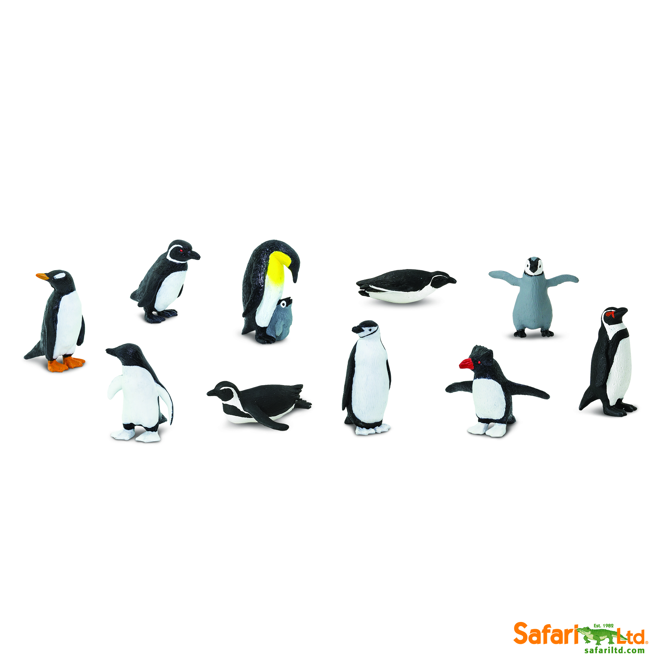 Slip and slide across the ice with the figures in our Penguins TOOB® by Safari Ltd®. Children love TOOBS® because the collections of small animal toys feature vibrant colours and accurate detail. The educational toys are available in dozens of fun themes. Each set of tiny figures comes in a reusable acetate tube with a spinning globe on the cap, which snaps open and closed for easy storage. They are perfect for classroom and homeschool projects, traveling, collecting, and imaginative play.
