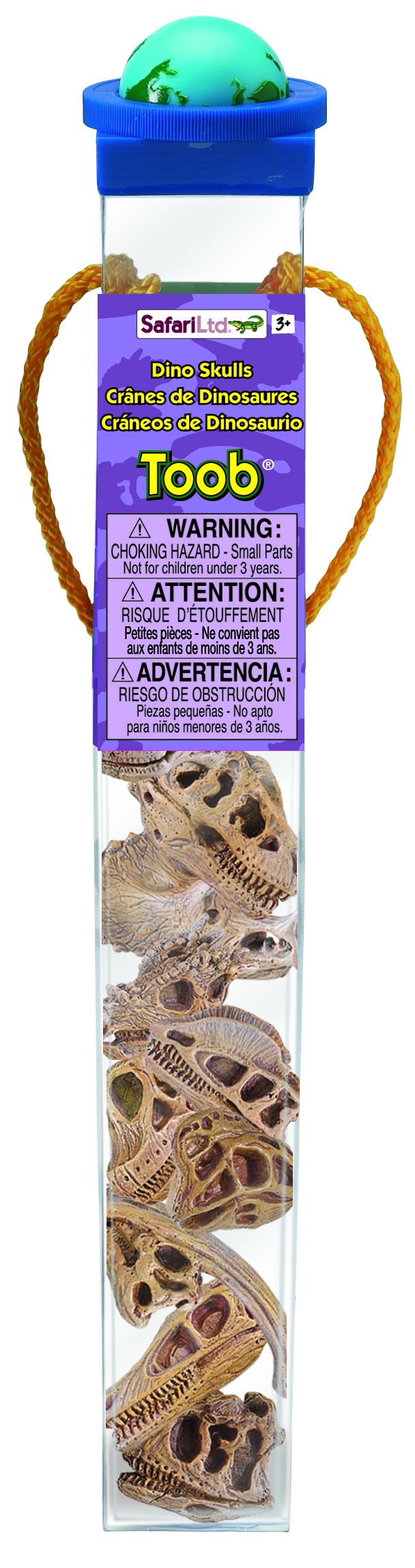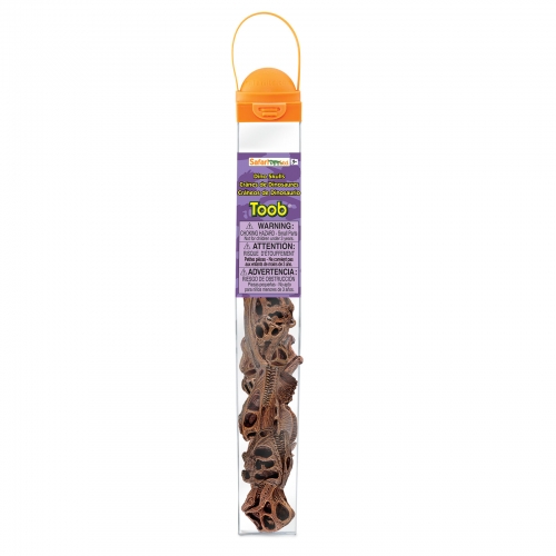 Find out what’s behind the pebbled skin and searching eyes of kids’ dinosaur toys with our Dinosaur Skulls TOOB® by Safari Ltd®. Children love TOOBS® because the collections of small toys feature vibrant colours and accurate detail. The educational toys are available in dozens of fun themes. Each set of tiny figures comes in a reusable acetate tube with a spinning globe on the cap, which snaps open and closed for easy storage. They are perfect for classroom and homeschool projects, traveling, collecting, and imaginative play.