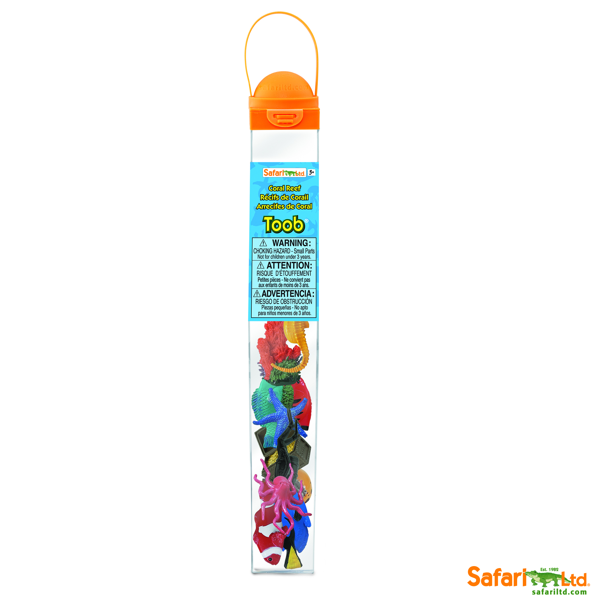 Coral Reefs contain some of the most diverse and vibrant ecosystems in the world. Get up close with the animal toys in our Coral Reef TOOB® by Safari Ltd®. Children love TOOBS® because the collections of small toys feature vibrant colours and accurate detail. The educational toys are available in dozens of fun themes. Each set of tiny figures comes in a reusable acetate tube with a spinning globe on the cap, which snaps open and closed for easy storage. They are perfect for classroom and homeschool projects, traveling, collecting, and imaginative play.