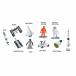 Astronaut with suit, Astronaut with Jet Pack, Moon Rover, Chimp, Satellite, Saturn 5 Rocket, Gemini Capsule, Apollo, Space Shuttle and Hubble Telescope.